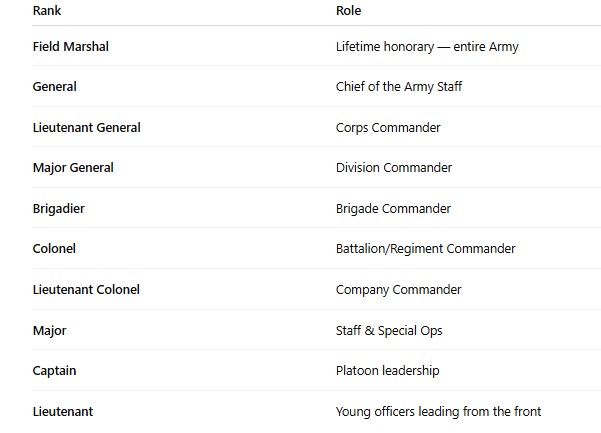 Ranks of the Indian Army — Leaders of War and Peace
